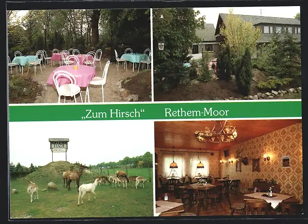 AK Rethem-Moor, Gasthaus Zum Hirsch, Rehe und Hirsche auf der Wiese