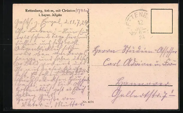 alte Ansichtskarte, gelaufen 1924, Briefmarke entfernt, guter Zustand