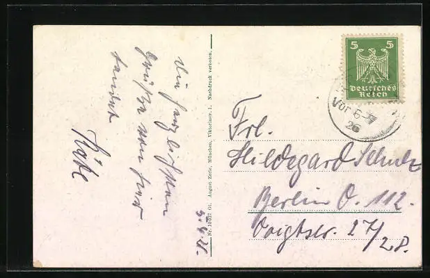 alte Ansichtskarte, gelaufen 1926, guter Zustand