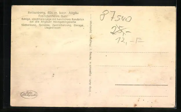 AK Rettenberg im Bayr. Allgäu, Hotel Fremdenheim Buhl