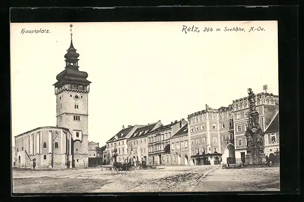 AK Retz, Hauptplatz mit Denkmal