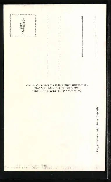 Personenbezogene Daten auf der Rückseite der Karte wurden durch blauen Textmarker unkenntlich gemacht. Die blauen Stellen sind auf die Vorderseite durchgeweicht und wirken sich negativ auf das Postkartenfoto aus