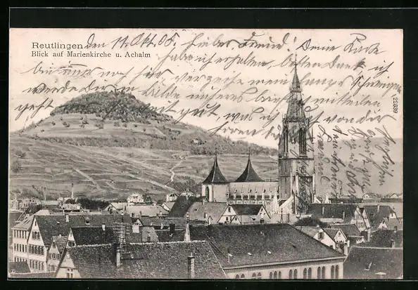 AK Reutlingen, Blick auf Marienkirche und Achalm