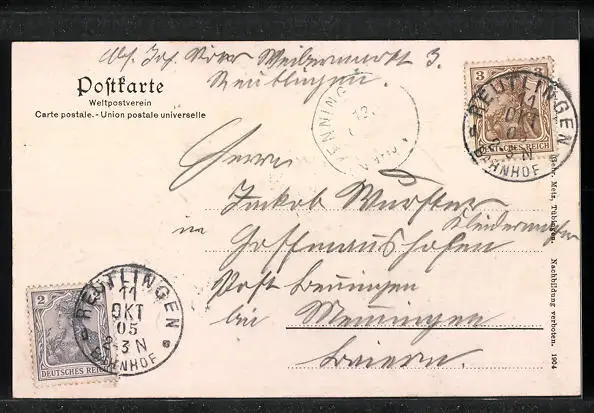 alte Ansichtskarte, gelaufen 1905, guter Zustand