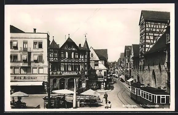 AK Reutlingen, Blick in die Wilhelmstrasse, Strassenbahn