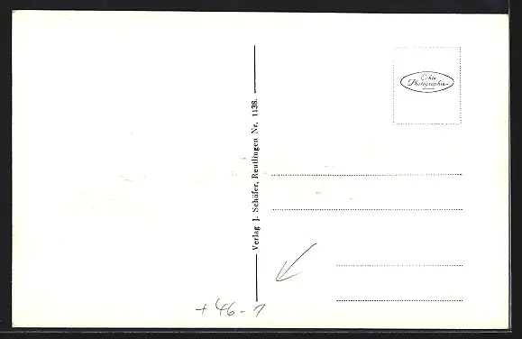 Personenbezogene Daten auf der Rückseite der Karte wurden durch blauen Textmarker unkenntlich gemacht. Die blauen Stellen sind auf die Vorderseite durchgeweicht und wirken sich negativ auf das Postkartenfoto aus