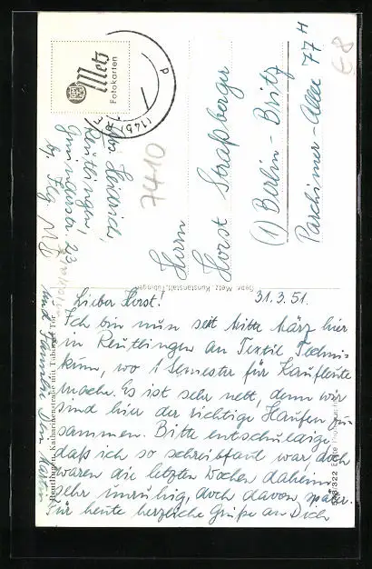 alte Ansichtskarte, gelaufen 1951, Briefmarke entfernt, guter Zustand