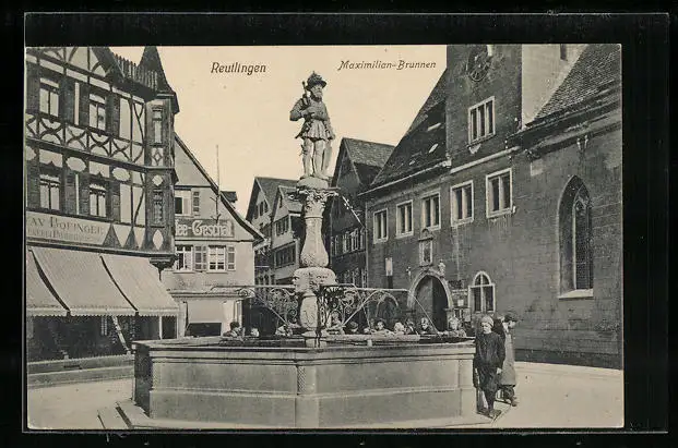 AK Reutlingen, Kinder am Maximilian-Brunnen