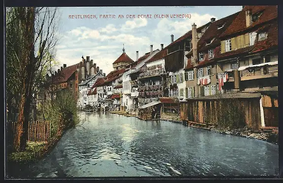 AK Reutlingen, Klein-Venedig, Partie an der Echaz