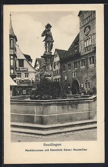 AK Reutlingen, Marktbrunnen mit Standbild Kaiser Maximilian