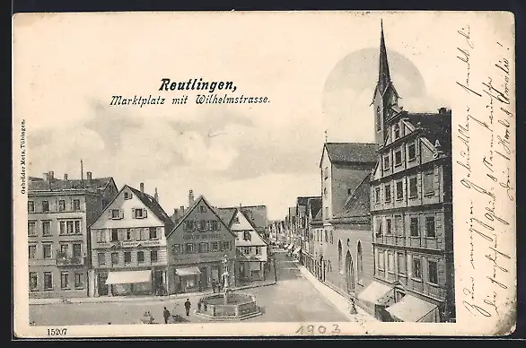 AK Reutlingen, Marktplatz mit Wilhelmstrasse
