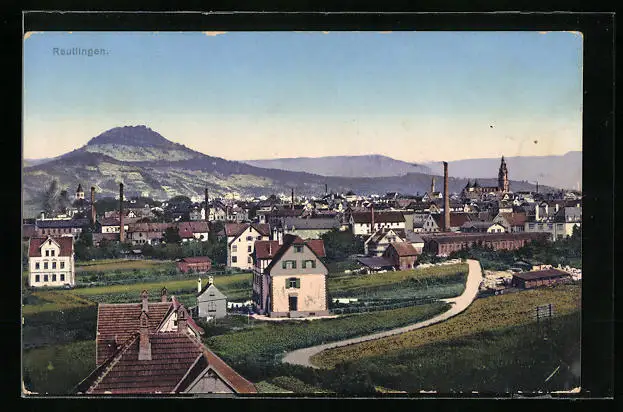 AK Reutlingen, Ortsansicht mit Schornsteinen
