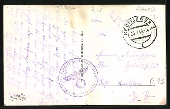 alte Ansichtskarte, gelaufen 1940 als Feldpost, guter Zustand