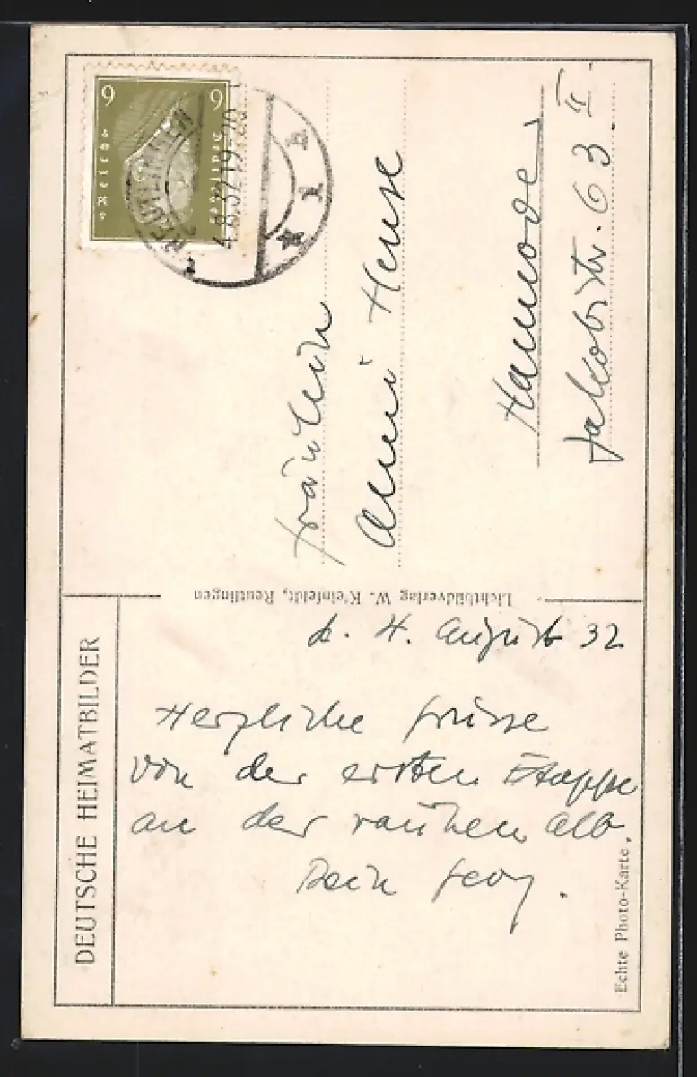 alte Ansichtskarte, gelaufen 1932, Eckknick oben re., guter Zustand
