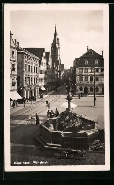 AK Reutlingen, Wilhelmstrasse mit Apotheke