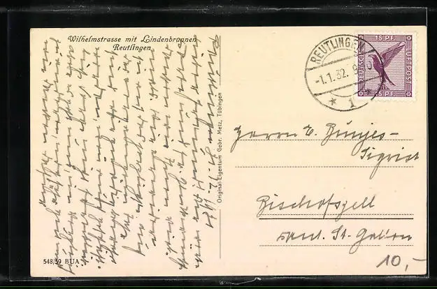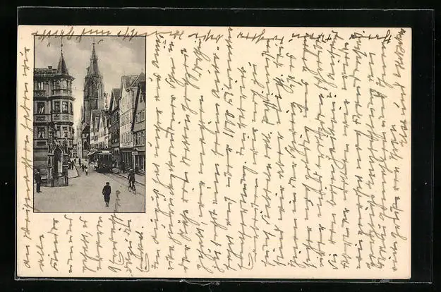 AK Reutlingen, Wilhelmstrasse mit Lindenbrunnen