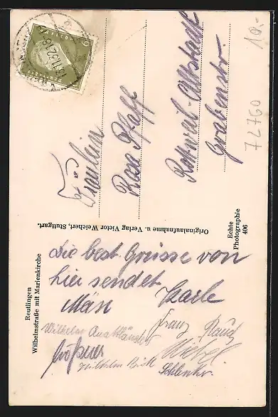 AK Reutlingen, Wilhelmstrasse mit Marienkirche