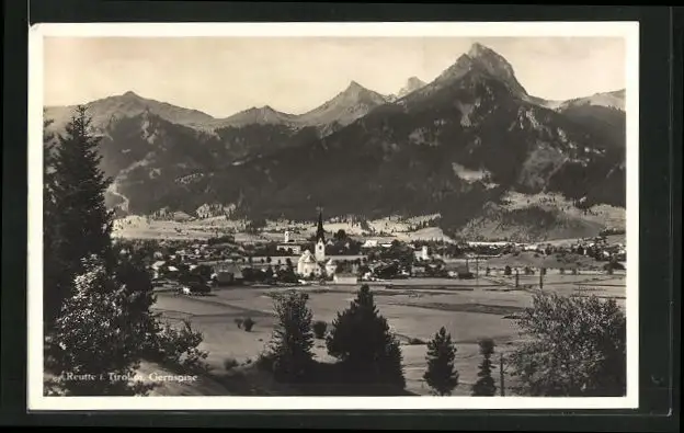 AK Reutte, Ortsansicht mit Gernspitze