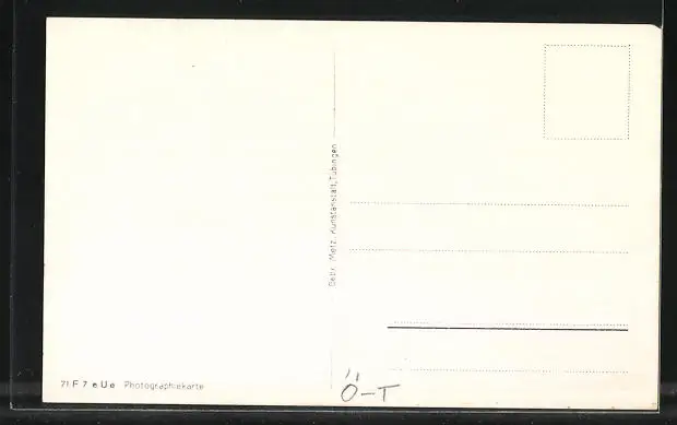 Personenbezogene Daten auf der Rückseite der Karte wurden durch blauen Textmarker unkenntlich gemacht. Die blauen Stellen sind auf die Vorderseite durchgeweicht und wirken sich negativ auf das Postkartenfoto aus