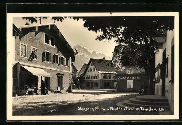 AK Reutte, Strassenpartie mit Café Reiter