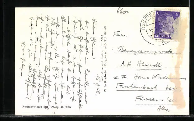 alte Ansichtskarte, gelaufen 1942, rückseitig Klebe- und Papierreste, guter Zustand