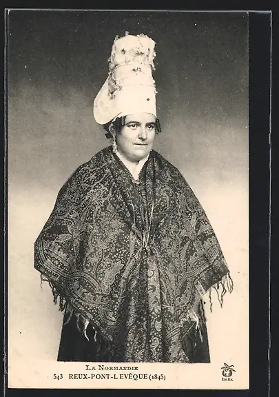 AK Reux-Pont-l`Evêque /Normandie, Frau in Tracht mit Haube