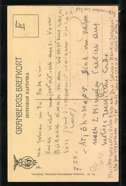 Personenbezogene Daten auf der Rückseite der Karte wurden durch blauen Textmarker unkenntlich gemacht. Die blauen Stellen sind auf die Vorderseite durchgeweicht und wirken sich negativ auf das Postkartenfoto aus