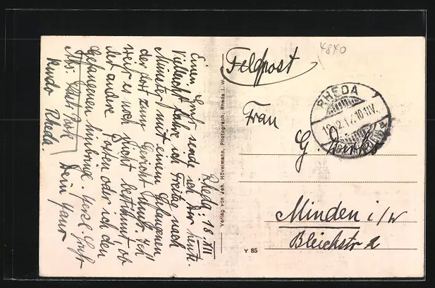 alte Ansichtskarte, gelaufen 1914 als Feldpost, guter Zustand