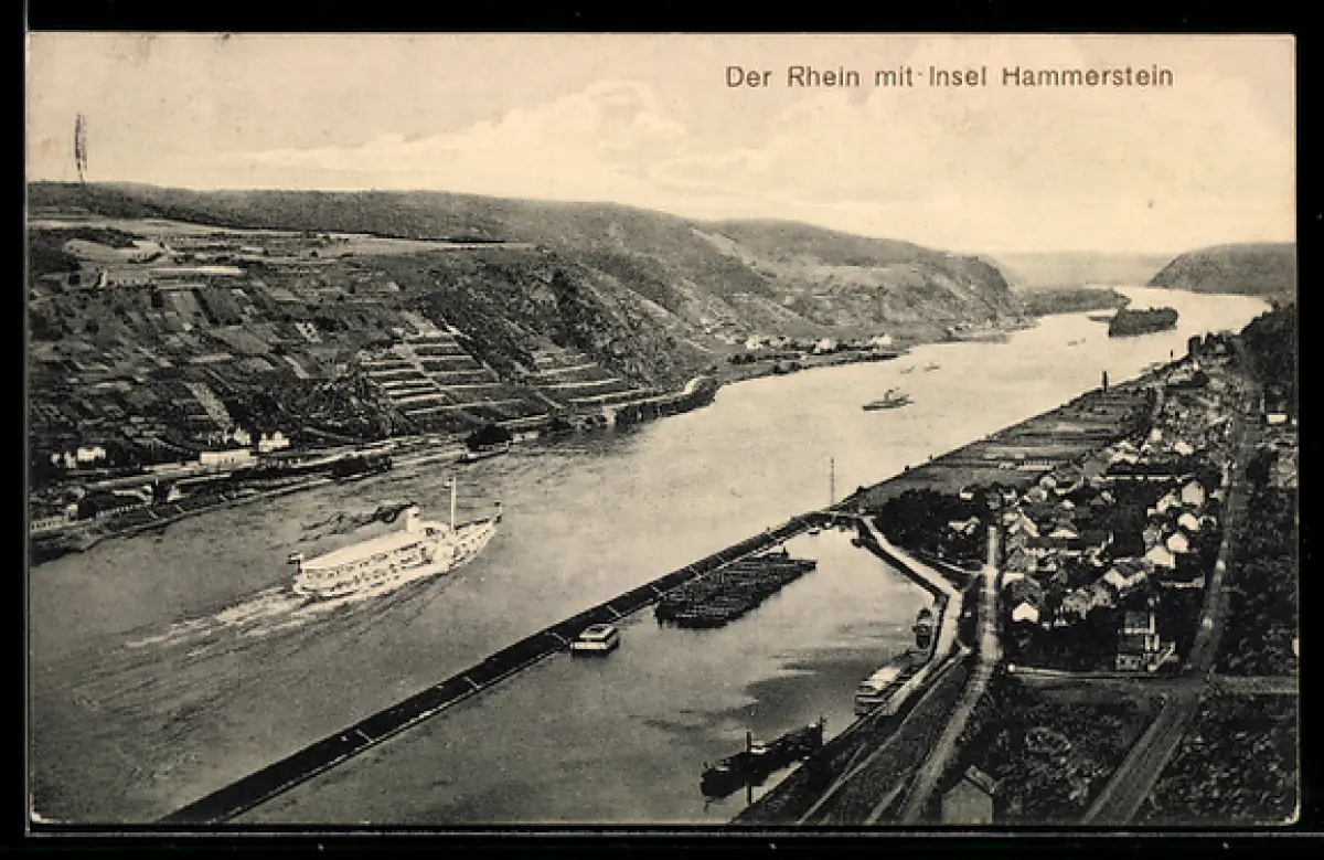AK Rheinbrohl a. Rh., Rhein mit Insel Hammerstein