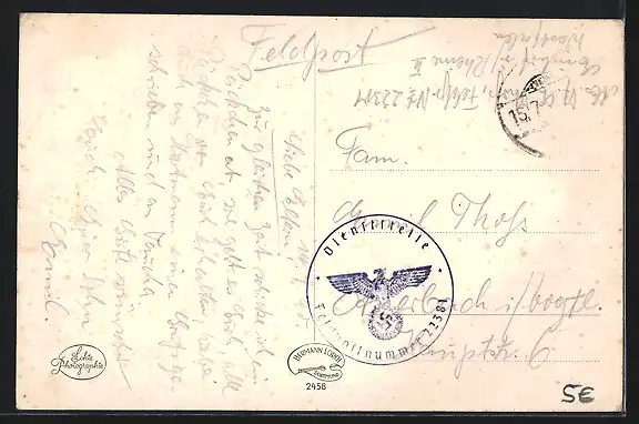 alte Ansichtskarte, gelaufen 1945, guter Zustand