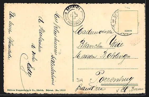 alte Ansichtskarte, gelaufen, Briefmarke entfernt, guter Zustand