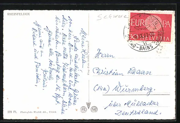 AK Rheinfelden, Ortsansicht aus der Vogelschau