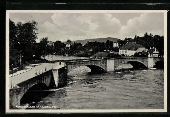 AK Rheinfelden, Passanten an der Rheinbrücke