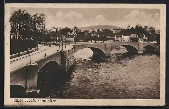 AK Rheinfelden, Rheinbrücke mit Passanten