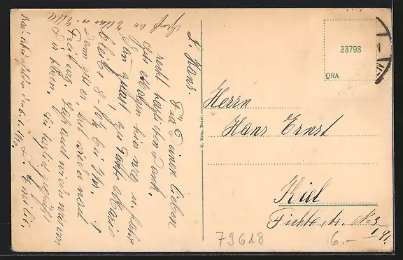 alte Ansichtskarte, gelaufen 1920, Briefmarke entfernt, guter Zustand
