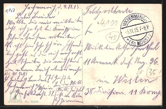 gelaufen 1915, rückseitig Klebe- und Papierreste, guter Zustand