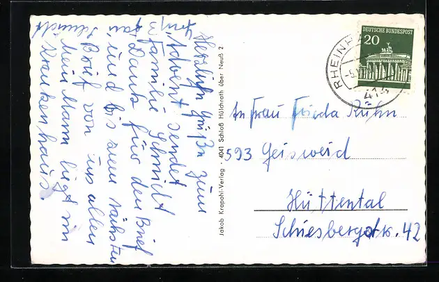 gelaufen 1967, Eckknick unten li., guter Zustand