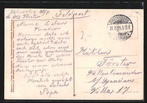 alte Ansichtskarte, gelaufen 1915, Eckknick li. unten, guter Zustand