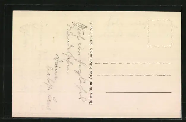 Personenbezogene Daten auf der Rückseite der Karte wurden durch blauen Textmarker unkenntlich gemacht. Die blauen Stellen sind auf die Vorderseite durchgeweicht und wirken sich negativ auf das Postkartenfoto aus