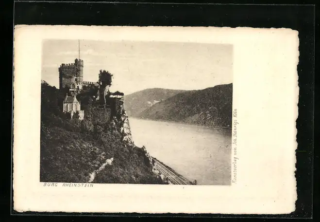 AK Rheinstein, Ansicht der Burg Rheinstein mit Rhein
