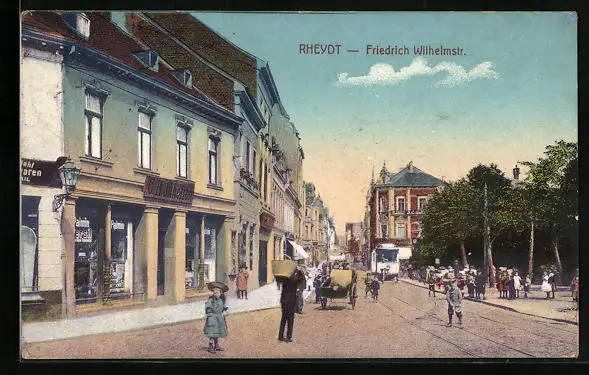 AK Rheydt, Friedrich Wilhelmstrasse mit Strassenbahn