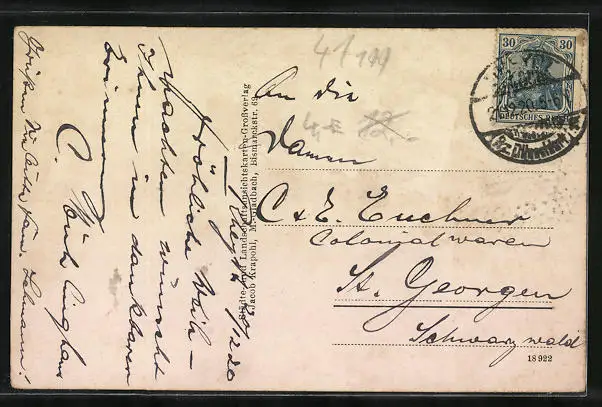alte Ansichtskarte, gelaufen 1920, Bugspuren unten, guter Zustand
