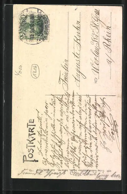 alte Ansichtskarte, gelaufen 1908, Eckknick links oben, guter Zustand