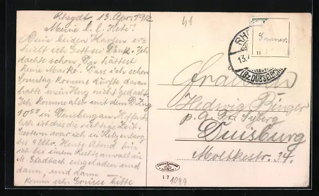 alte Ansichtskarte, gelaufen 1912, Briefmarke entfernt, guter Zustand