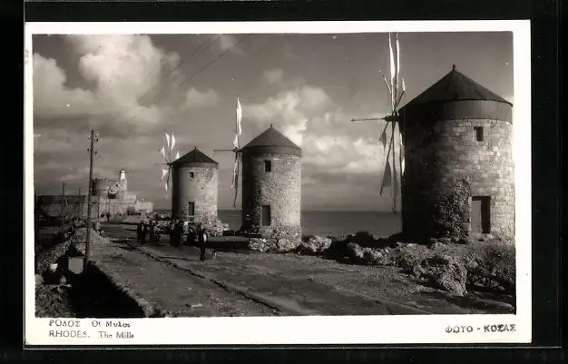 AK Rhodes, The Mills, Blick auf Windmühlen