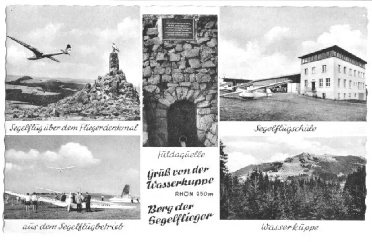 Ansichtskarte Rhön Gruß von der Wasserkuppe - Berg der Segelflieger fünf Abb. Erhaltung I-II ungelaufen, um 1960 Verlag: R. & R. Büttner, Paulus-Verlag, Fulda