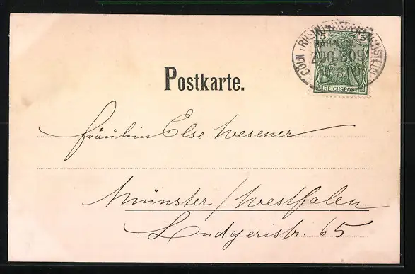 alte Ansichtskarte, gelaufen 1900, guter Zustand