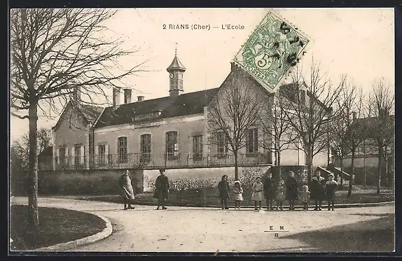 AK Rians, Vue de l`école avec des enfants devant le bâtiment