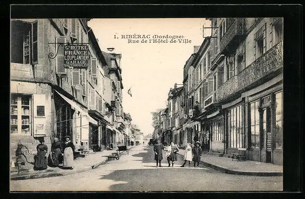 AK Ribérac, Rue de l'Hotel-de-Ville
