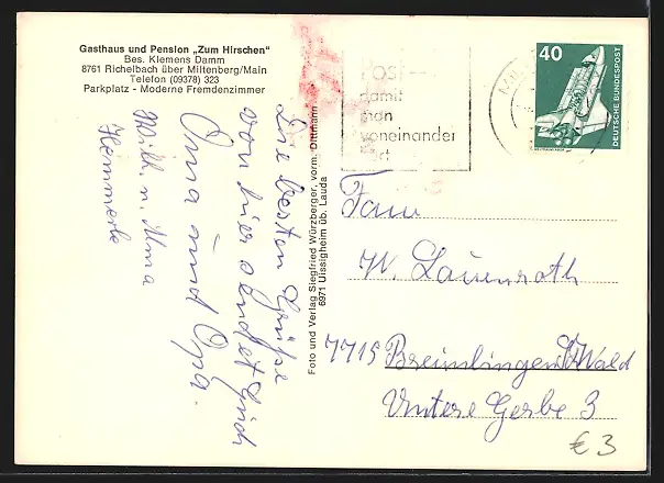 AK Richelbach, Gasthaus und Pension Zum Hirschen